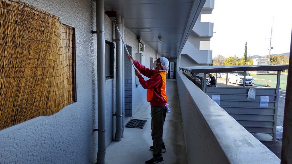 年末に弊社に管理をお任せいただいているマンション・アパートの清掃・点検を行っています。パートを含め全社員で1日かけて全物件を回ります。日頃の感謝の気持ちを込めて清掃を行い、入居者の方に気持ち良く新年を迎えて頂けるように清掃しています。