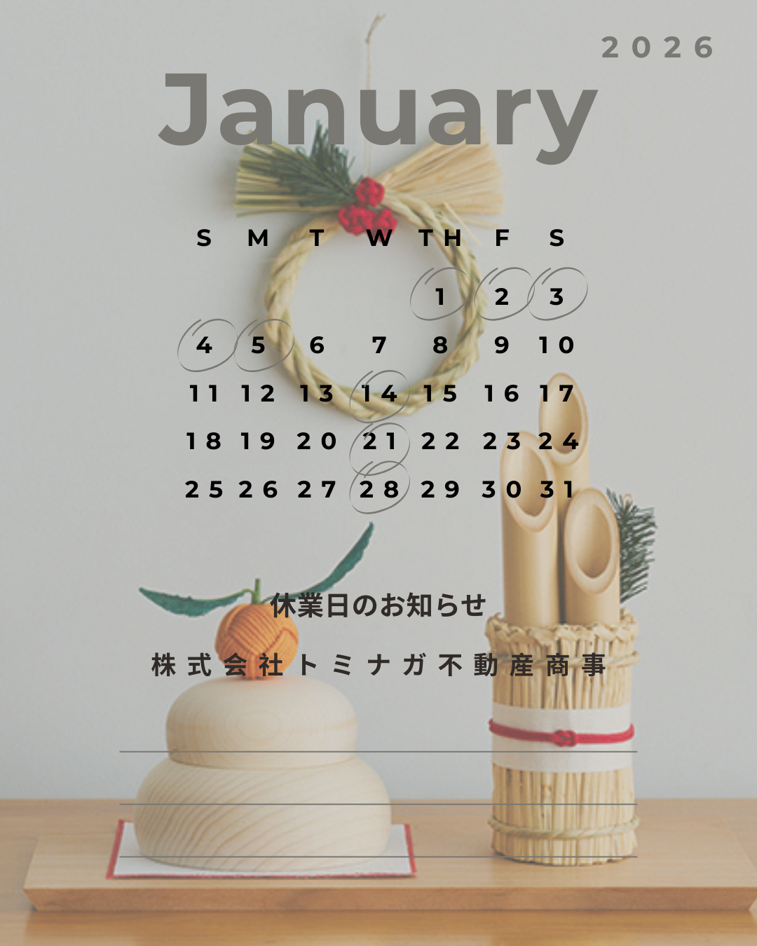 年末年始の休業日とさせて頂きます。